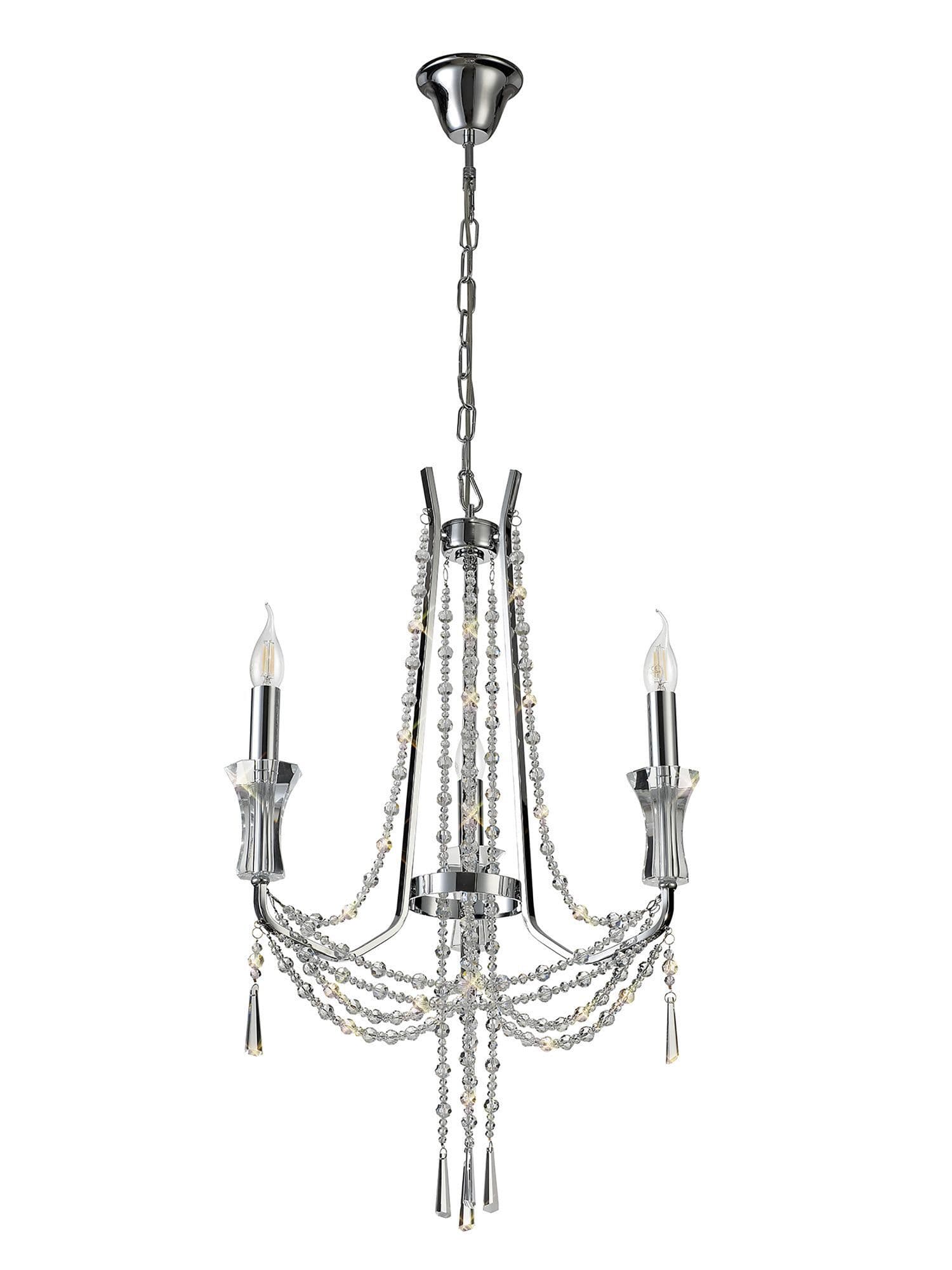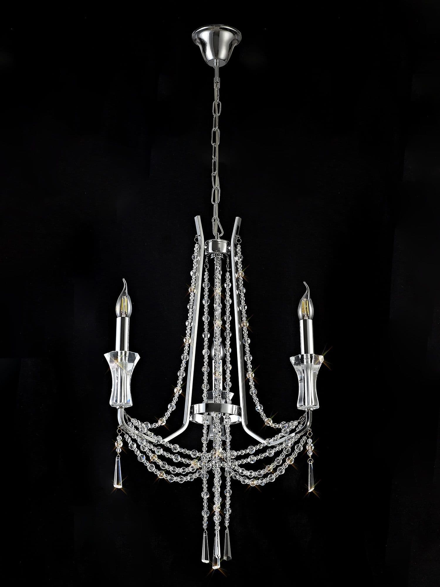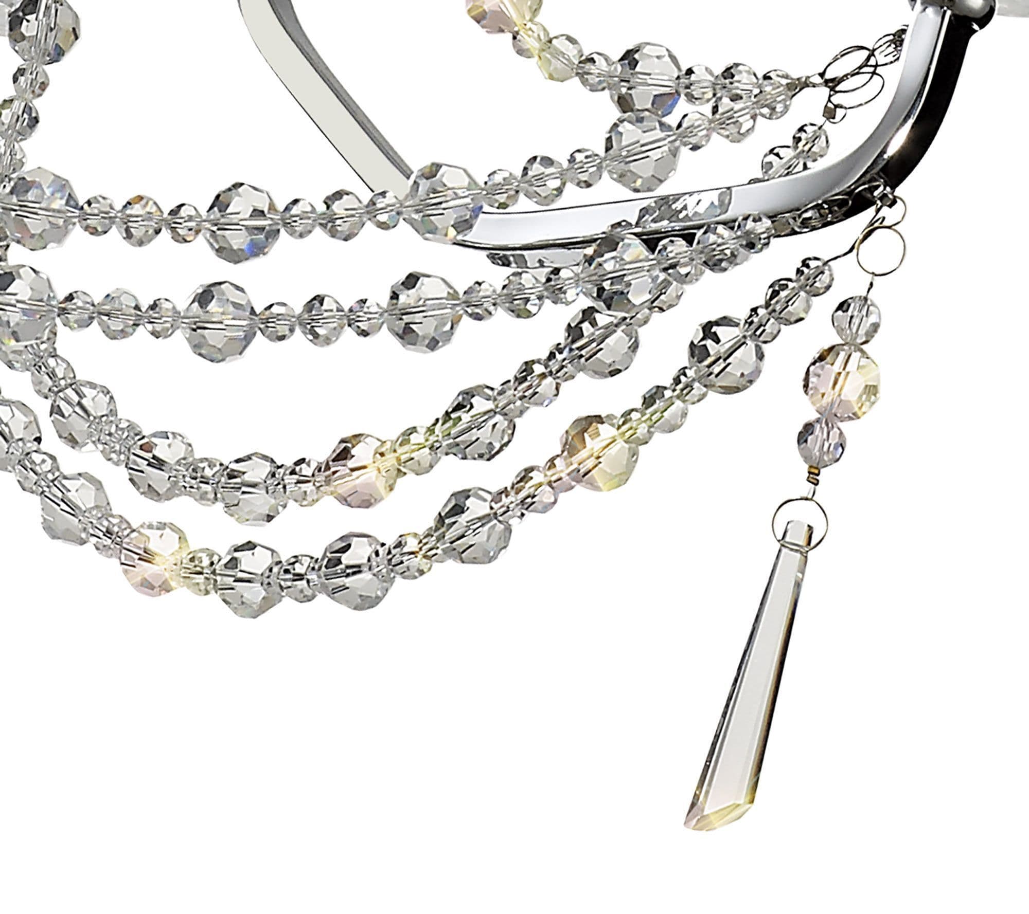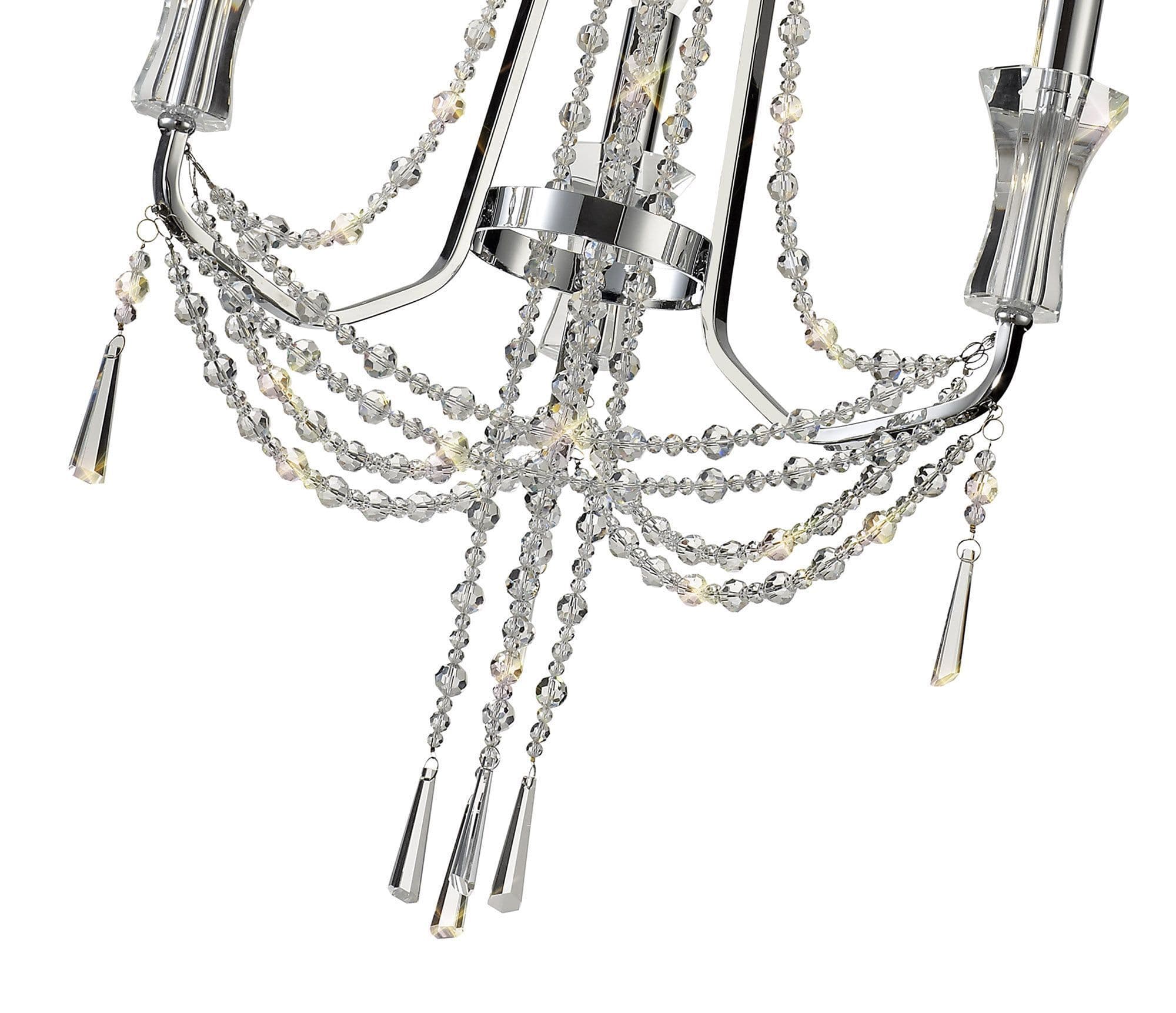 This collection of stunning crystal chandeliers and wall uses a minimal amount of framework ensuring the dazzling crystal components are the main feature. Each arm is adorned from the top of the centre column down to the lamp holder with high quality clear crystal pieces which alternate in size producing a visually enticing effect. Ansel's distinctive presence is even more prominent with additional crystal strands draped from arm to arm meeting below the substantial crystal glass piece which hosts the E14 lamp holders. available in three colour finishes to complement a modern, traditional or contemporary room setting, Angus is a high-Class, sophisticated design.