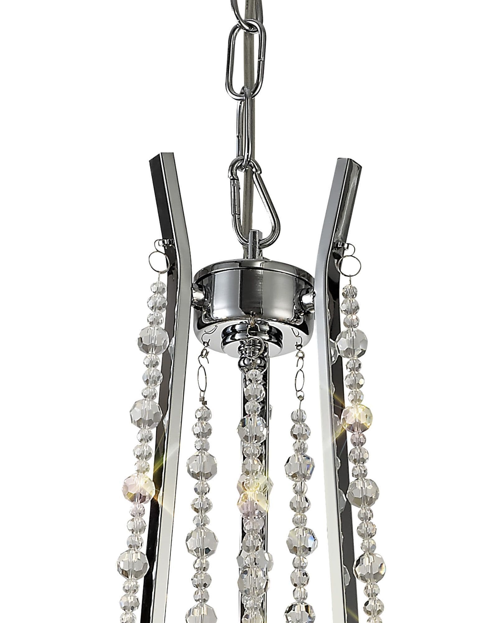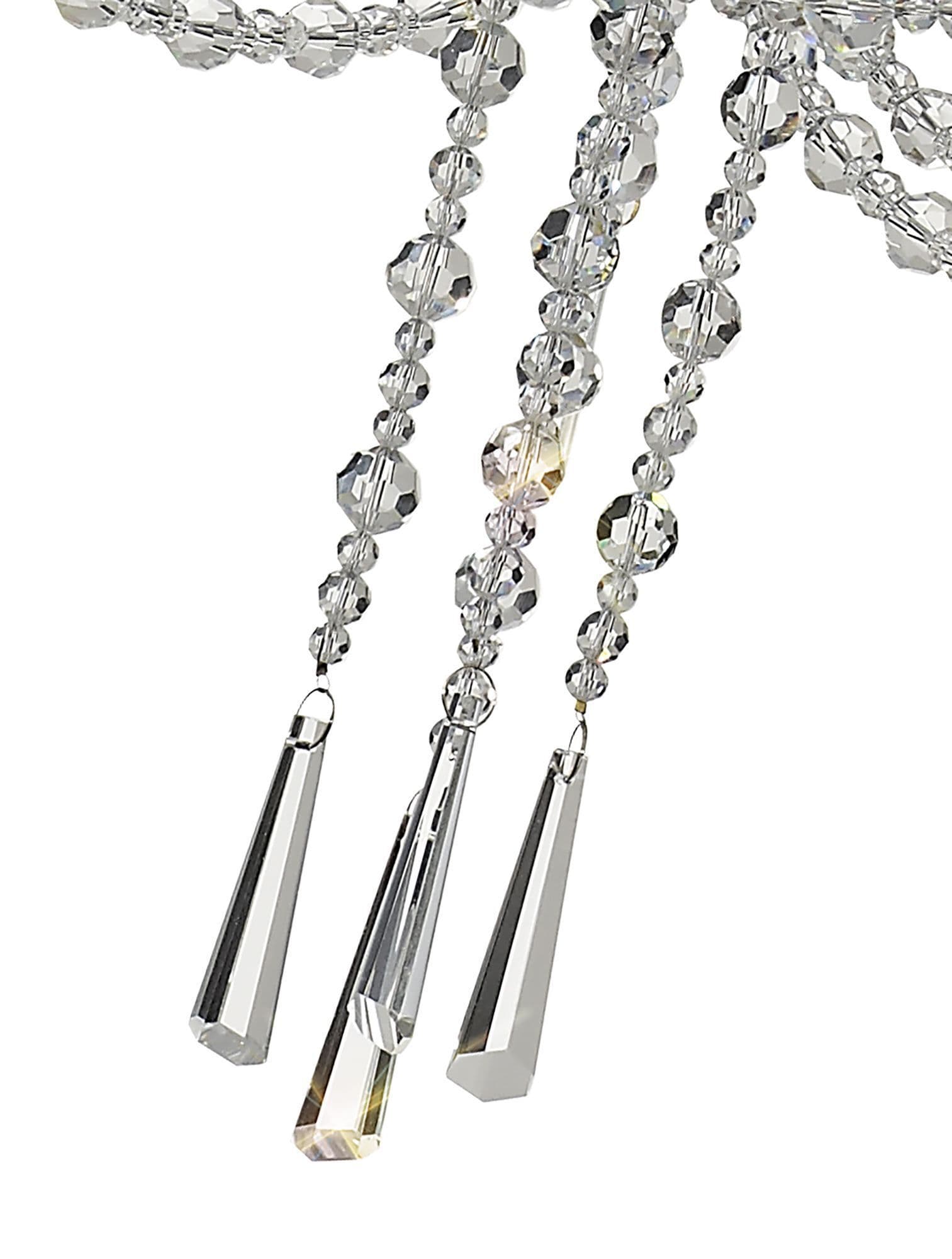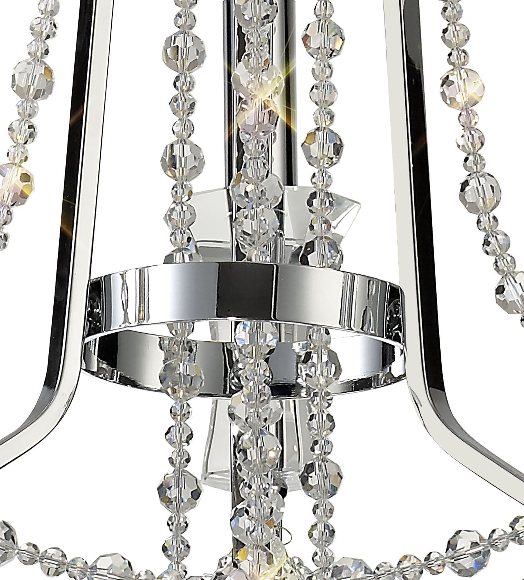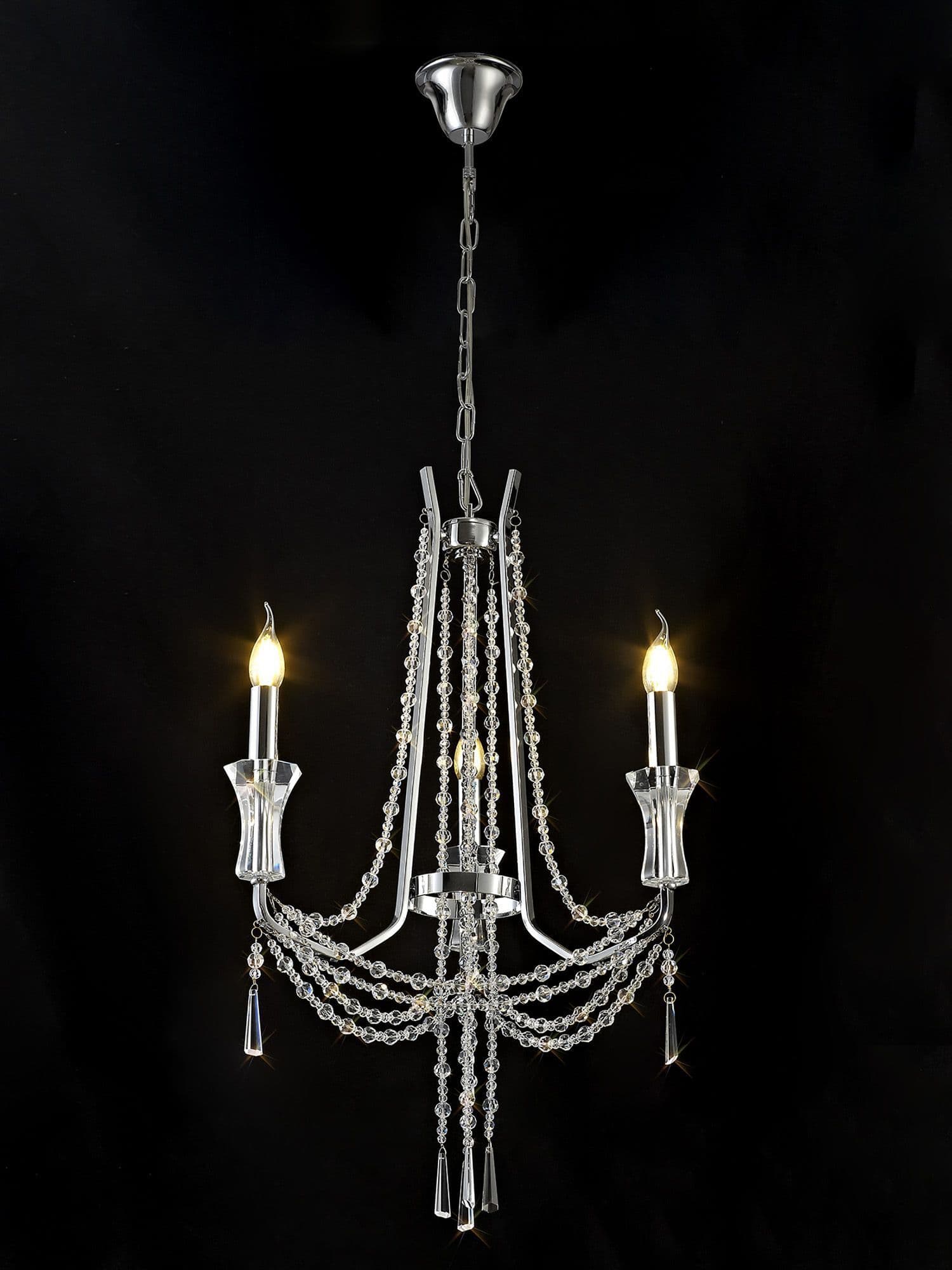 This collection of stunning crystal chandeliers and wall uses a minimal amount of framework ensuring the dazzling crystal components are the main feature. Each arm is adorned from the top of the centre column down to the lamp holder with high quality clear crystal pieces which alternate in size producing a visually enticing effect. Ansel's distinctive presence is even more prominent with additional crystal strands draped from arm to arm meeting below the substantial crystal glass piece which hosts the E14 lamp holders. available in three colour finishes to complement a modern, traditional or contemporary room setting, Angus is a high-Class, sophisticated design.