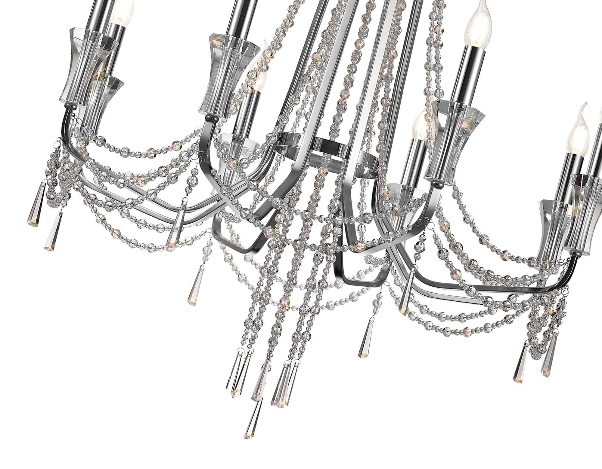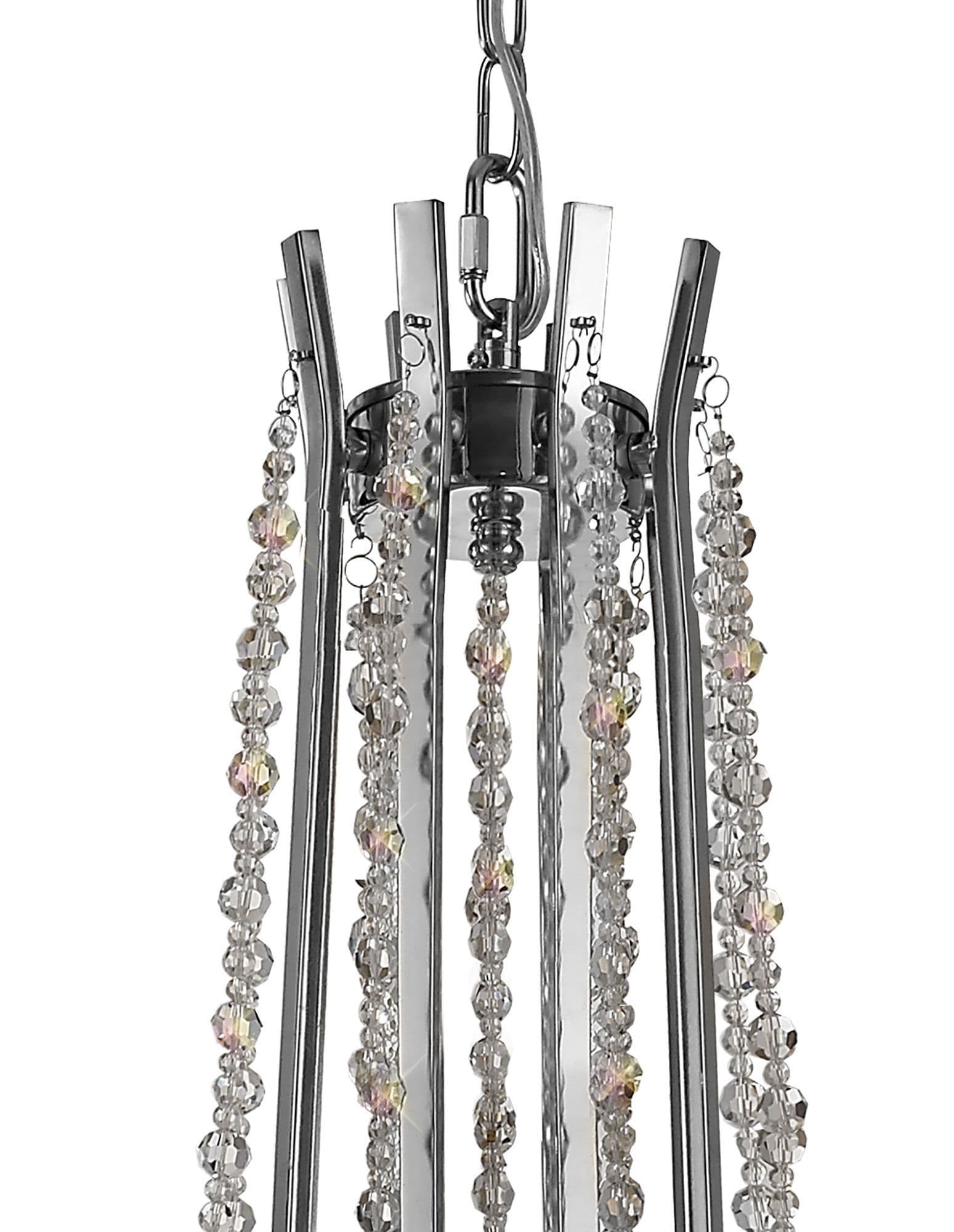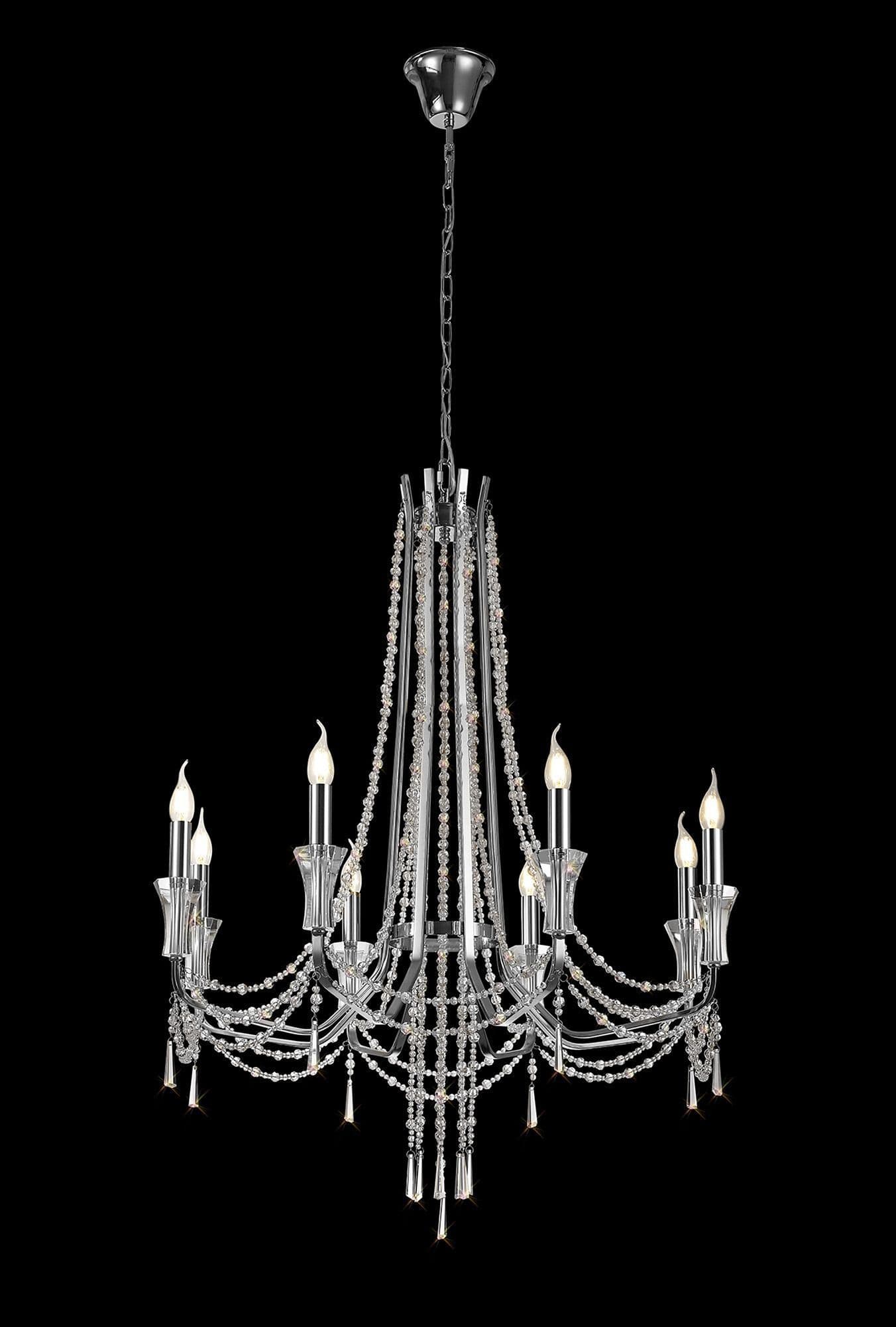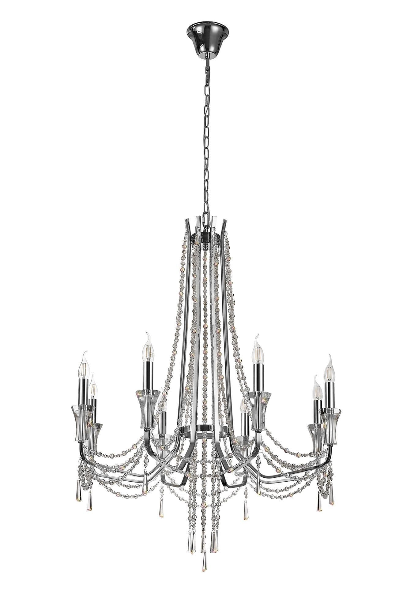 This collection of stunning crystal chandeliers and wall uses a minimal amount of framework ensuring the dazzling crystal components are the main feature. Each arm is adorned from the top of the centre column down to the lamp holder with high quality clear crystal pieces which alternate in size producing a visually enticing effect. Ansel's distinctive presence is even more prominent with additional crystal strands draped from arm to arm meeting below the substantial crystal glass piece which hosts the E14 lamp holders. available in three colour finishes to complement a modern, traditional or contemporary room setting, Angus is a high-Class, sophisticated design.