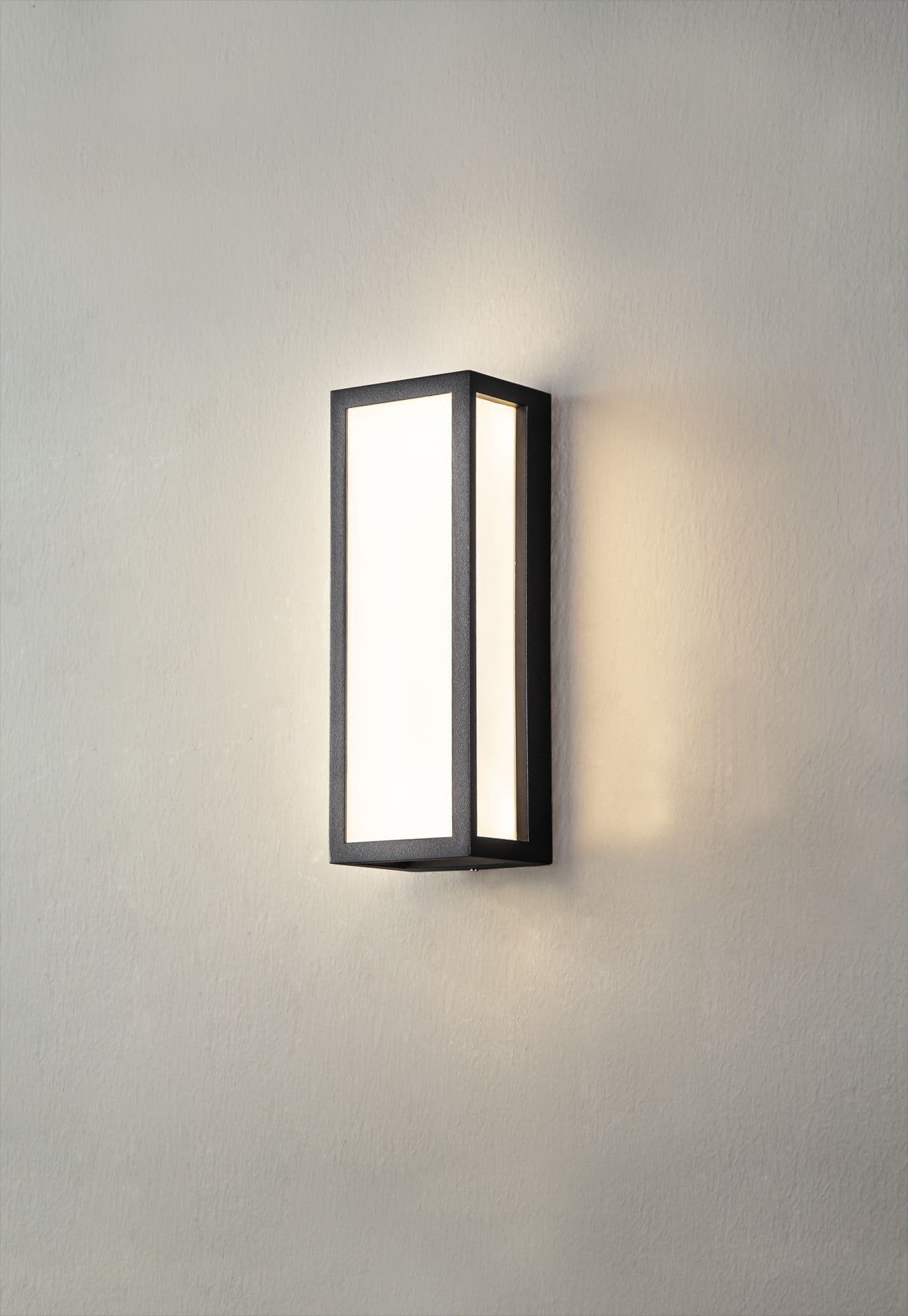 Each IP65 rated wall lamp in the Bakerloo range have a similar outer structure. The display casing concept sees a clear glass box housing the E27 lamp holders which is framed within an anthracite metal outline. Aswell as the one and two light E27 wall lights Bakerloo also includes and LED version with frosted diffuser to conceal the high quality integral LEDs.