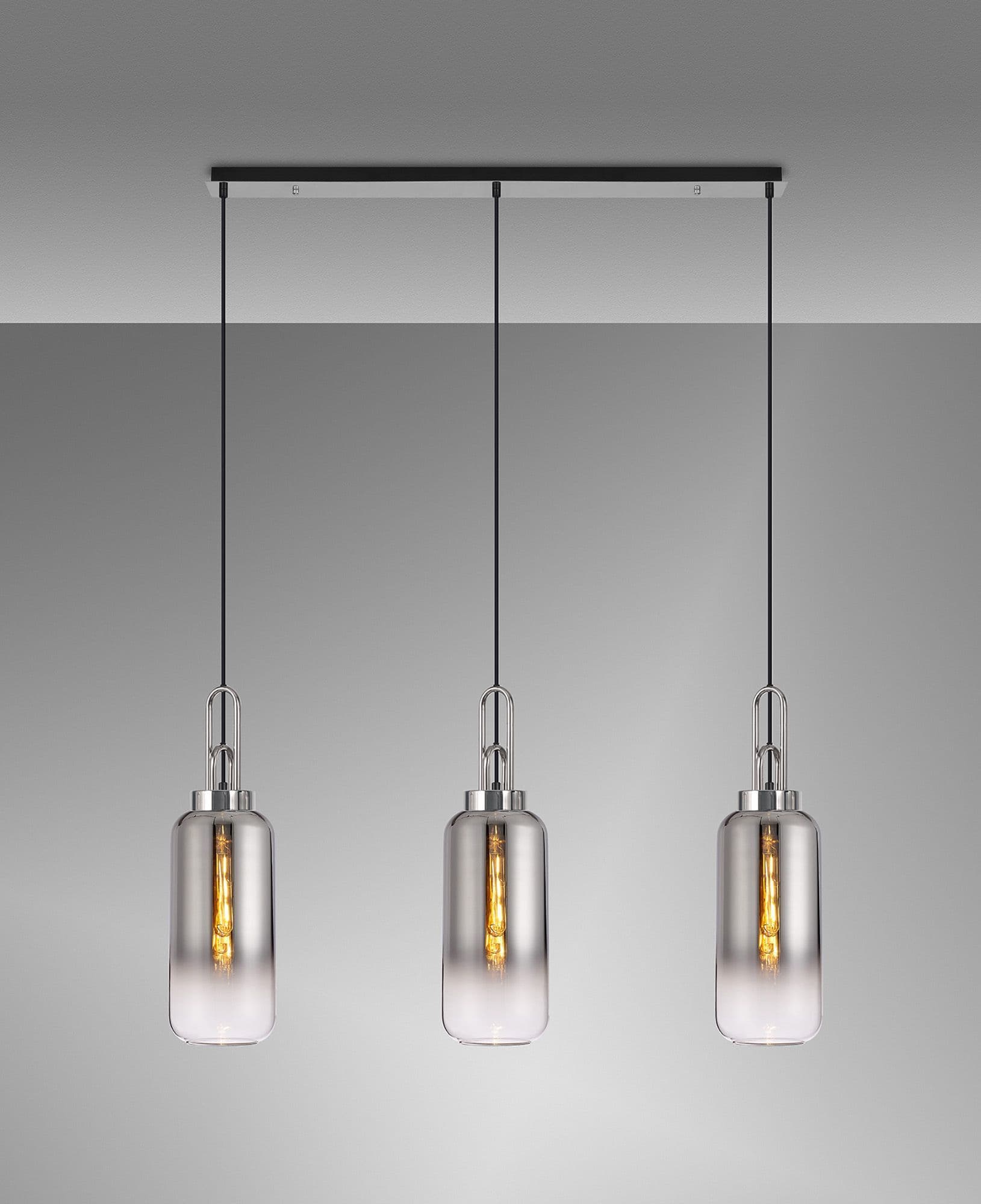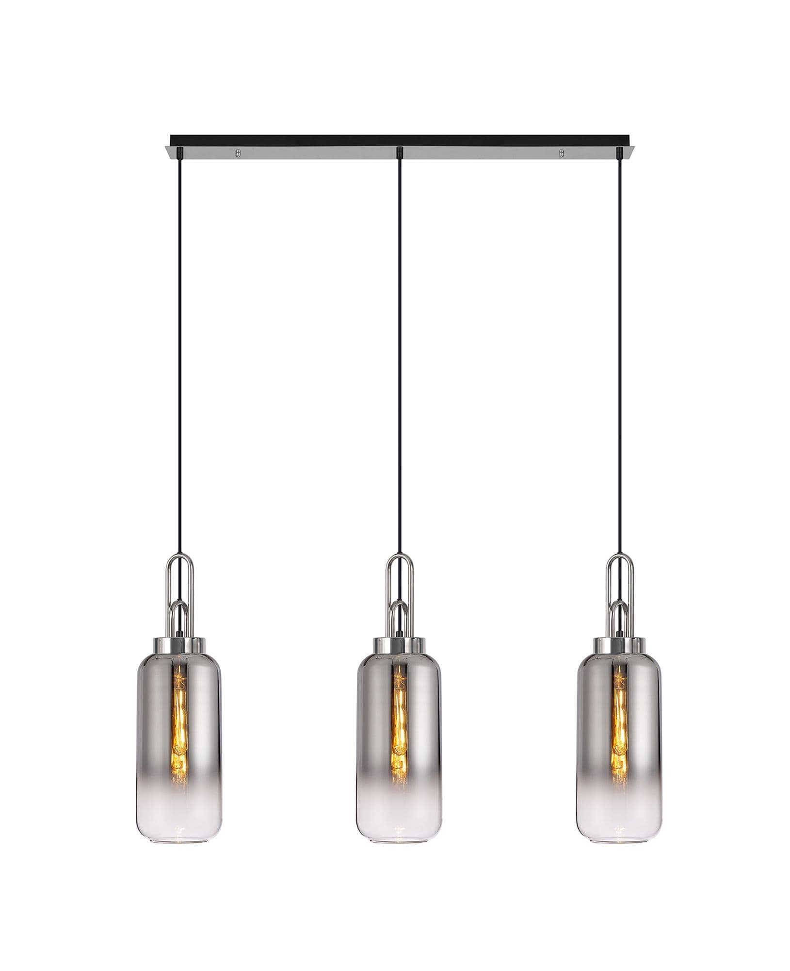 Brief Description:Barcelona Linear 3 Light Pendant E27 With 16cm Cylinder Glass, Brass Gold/Clear Brass Gold/Matt Black