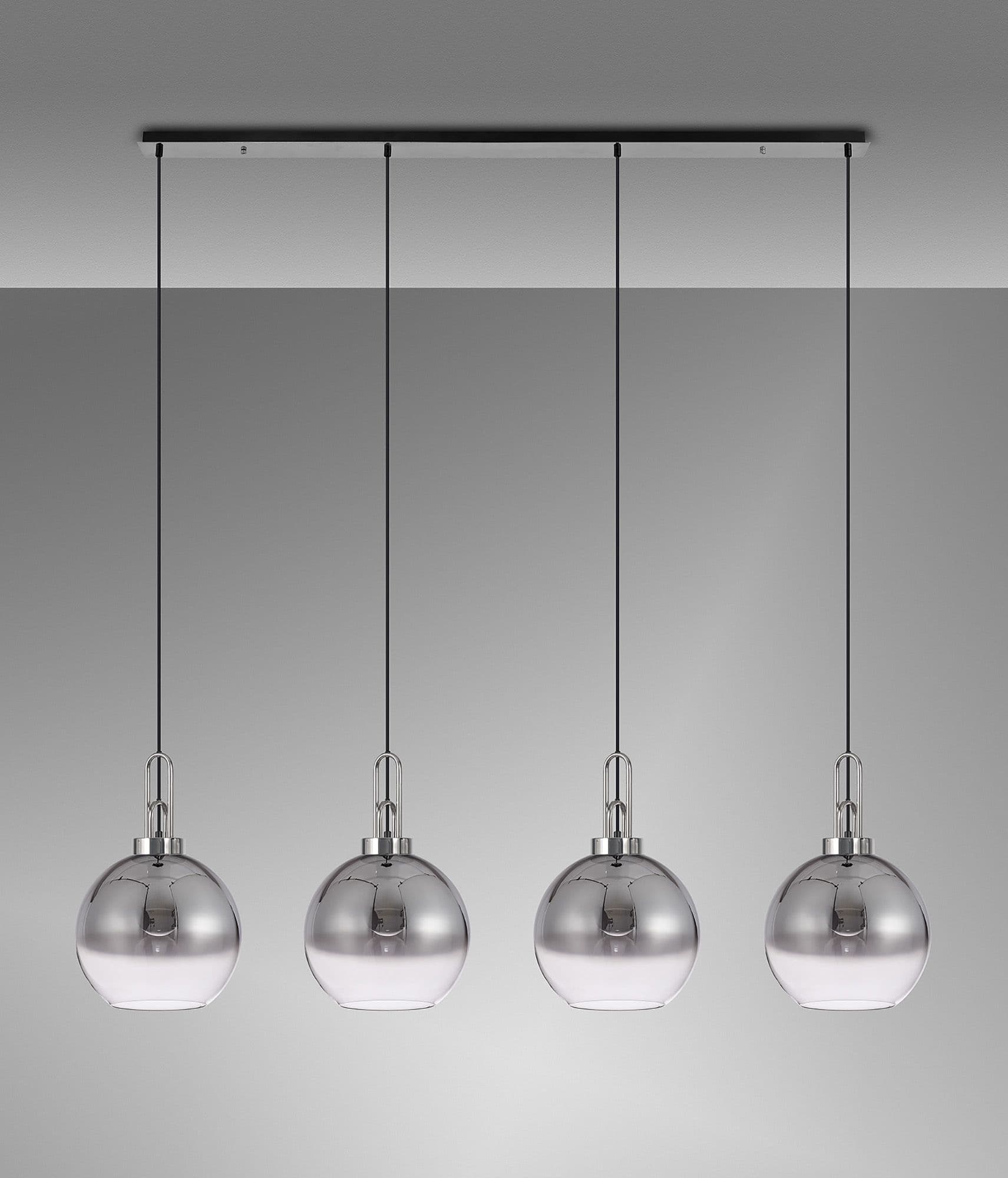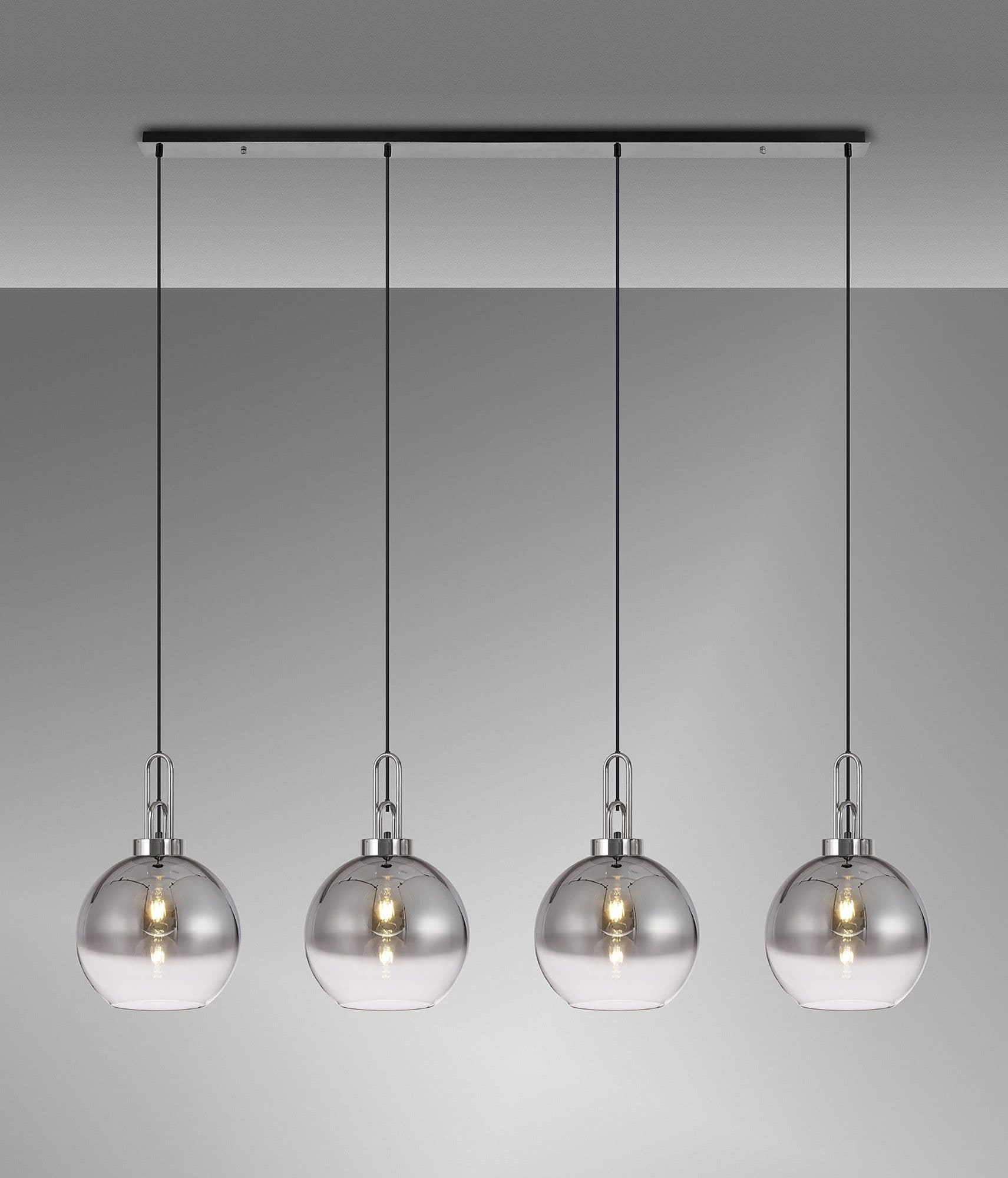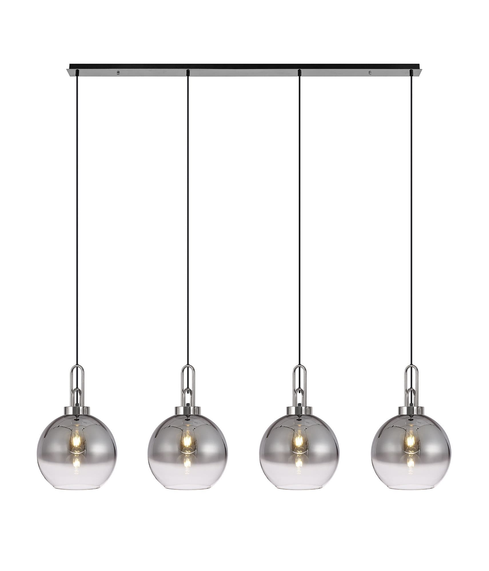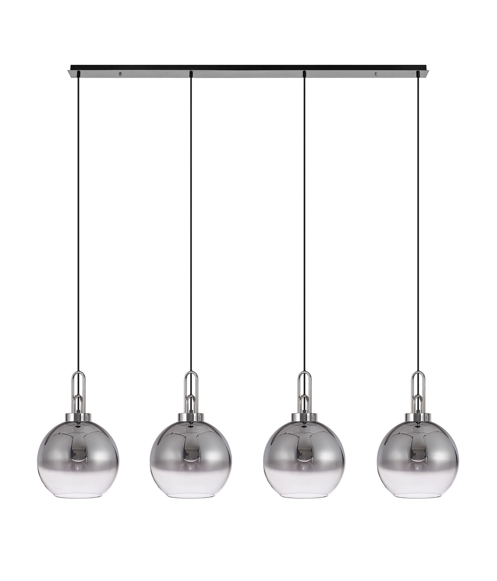 Brief Description:Barcelona Linear 4 Light Pendant E27 With 30cm Globe Glass, Brass Gold/Clear Brass Gold/Matt Black