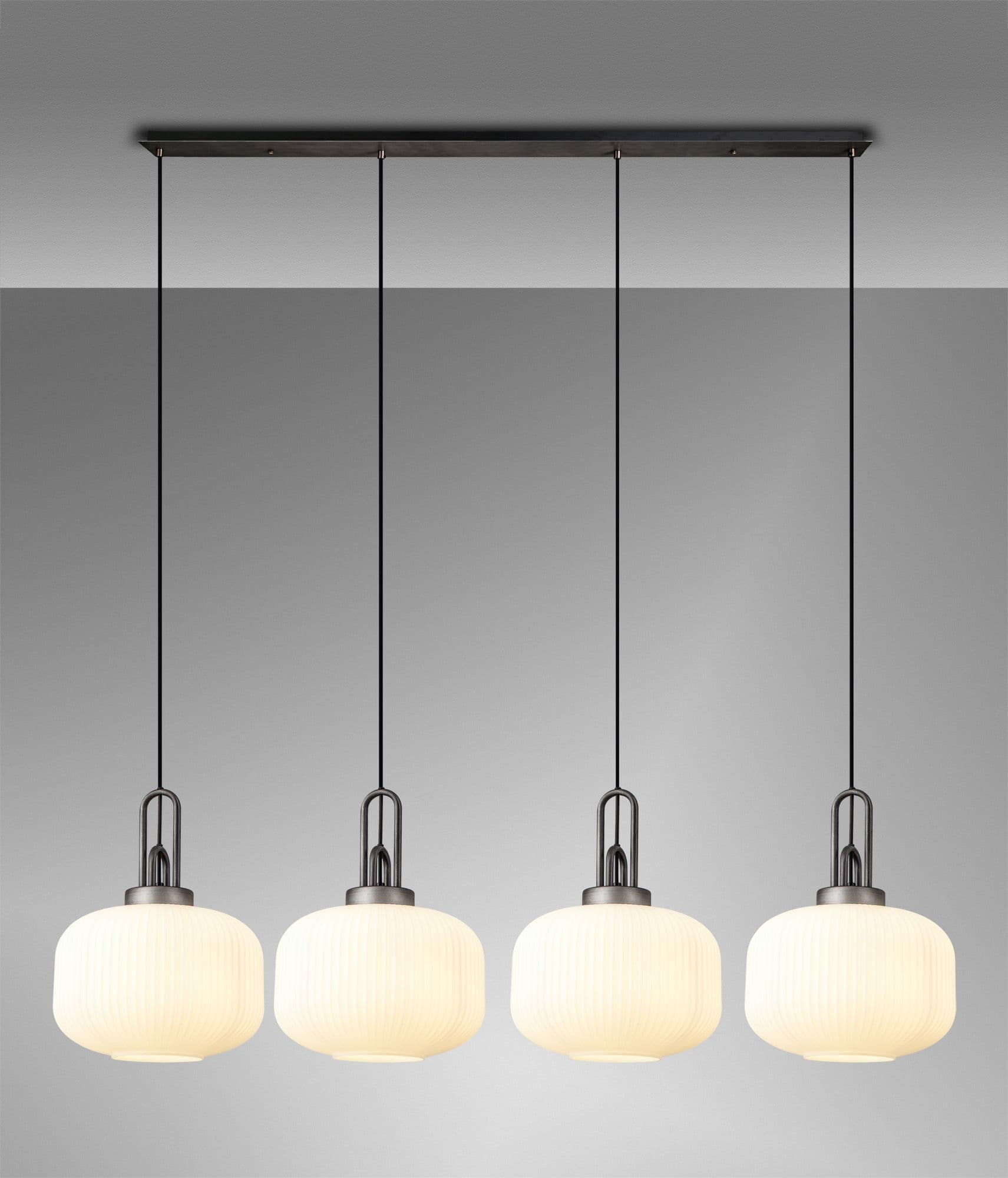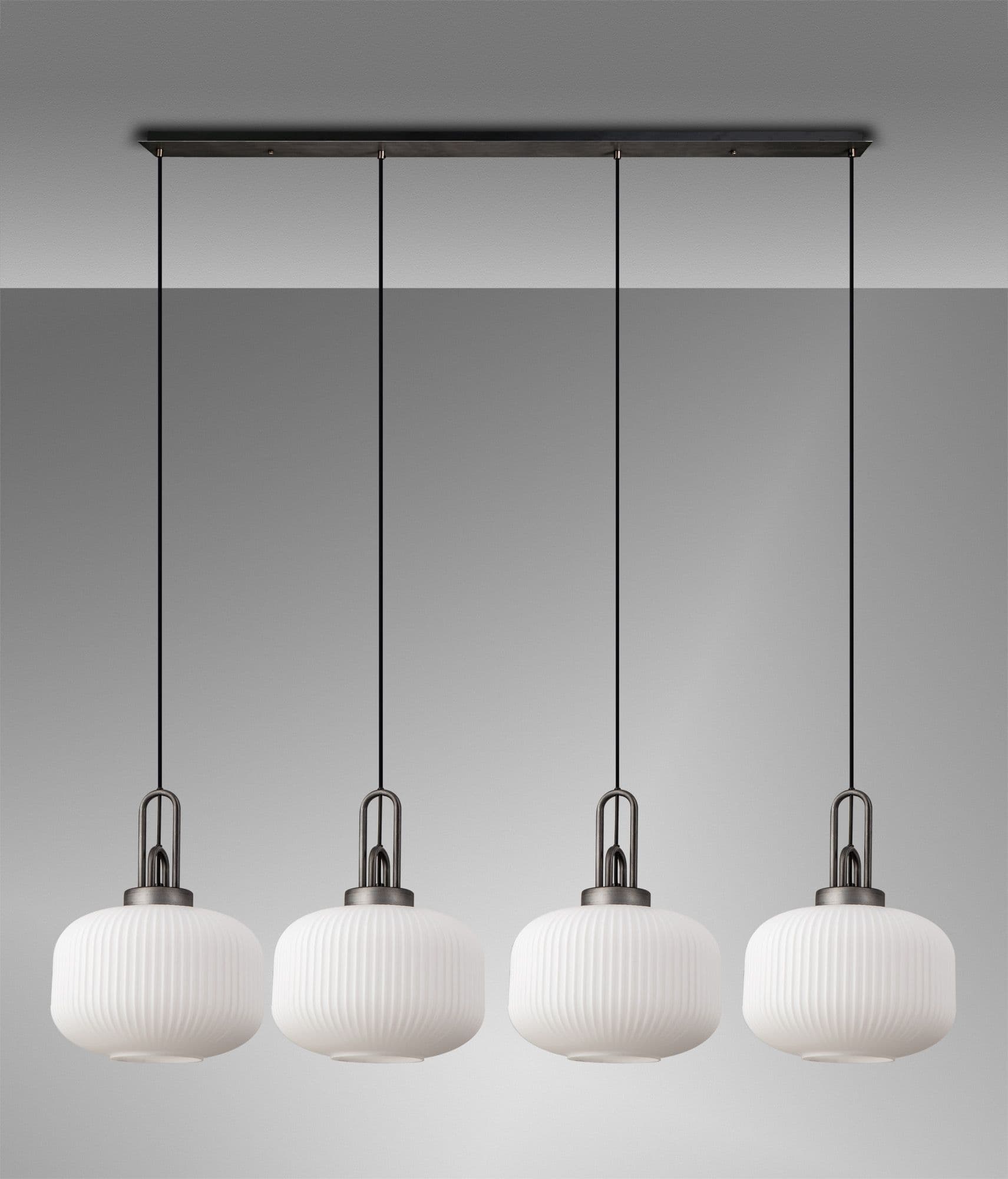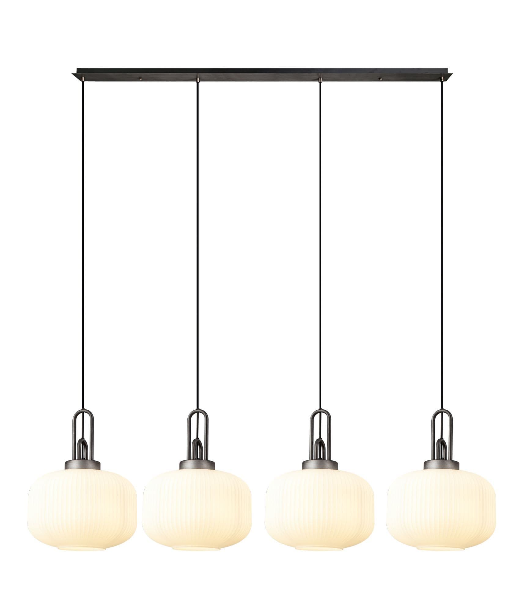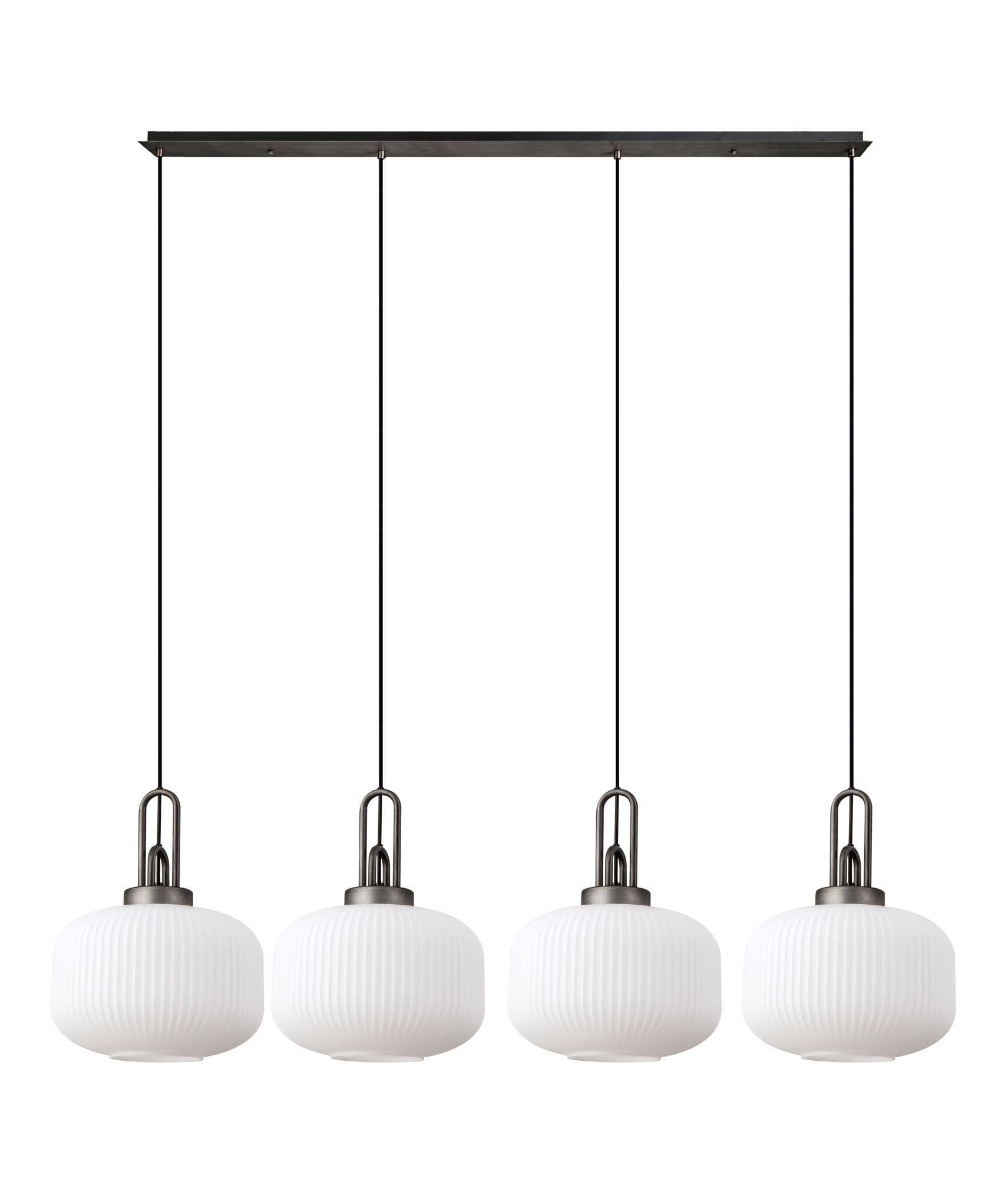 Brief Description:Barcelona Linear Suspension Kit, 4 x E27, Aged Pewter/Matt Black With 30cm Pumpkin Shaped Ribbed Champagne Glass
