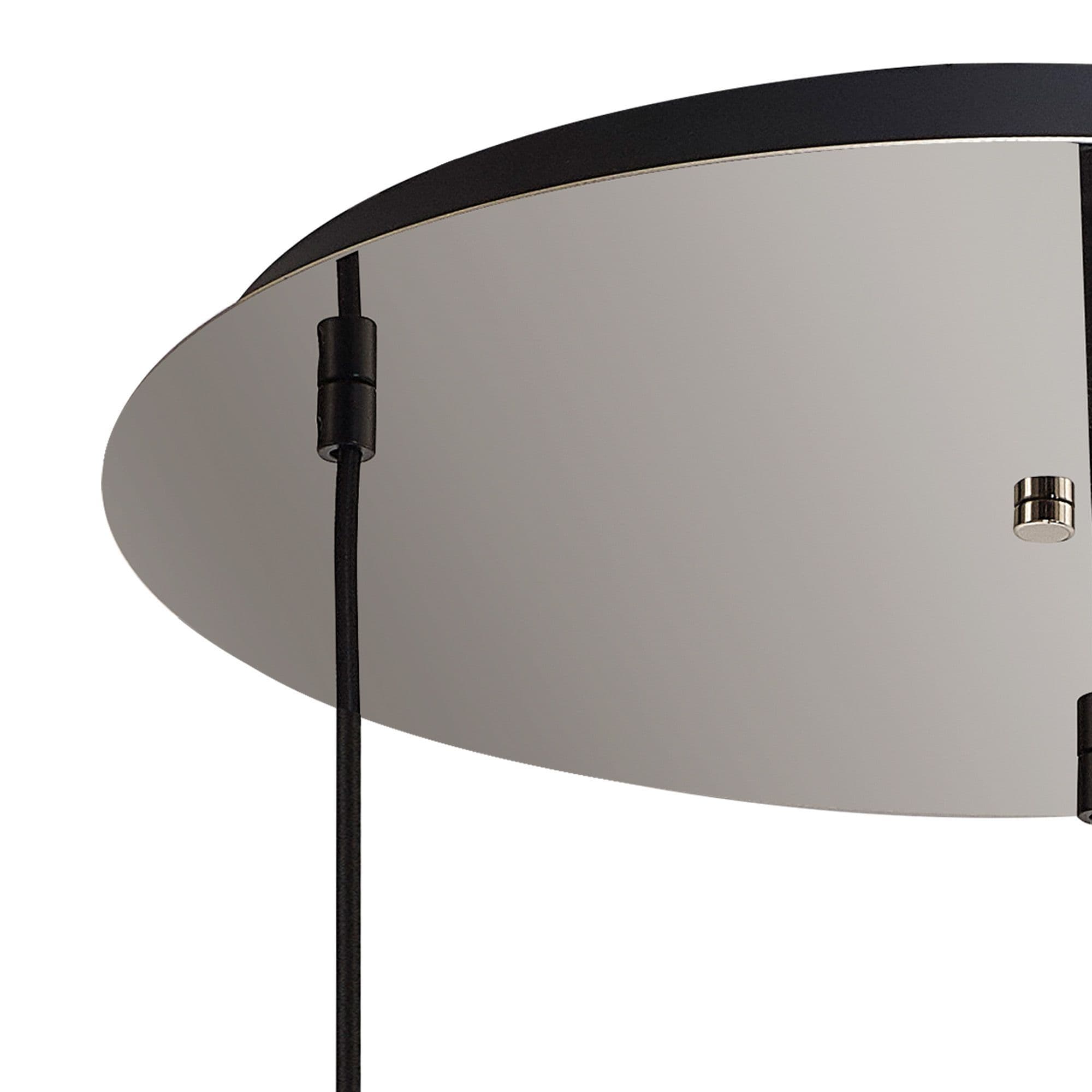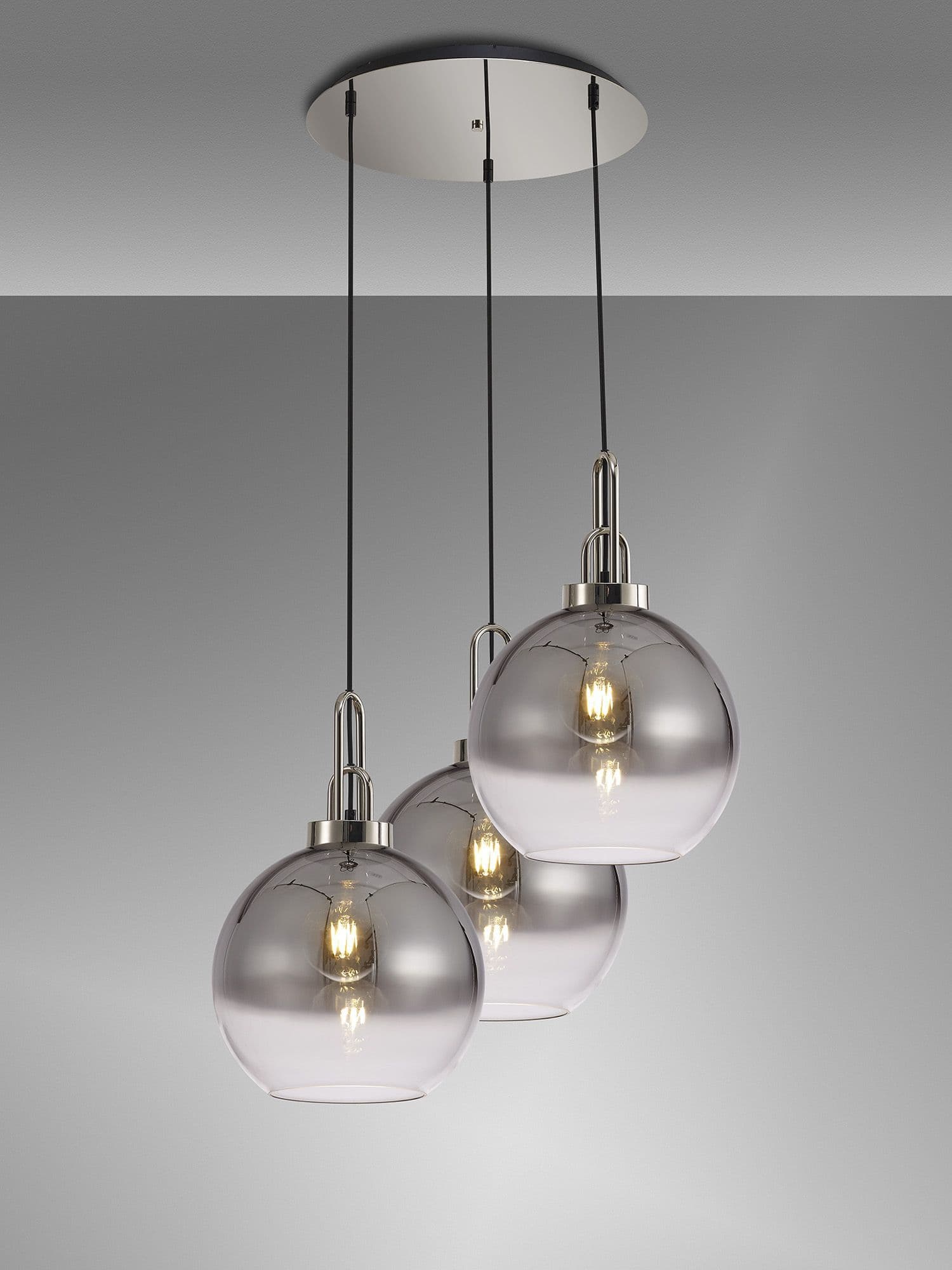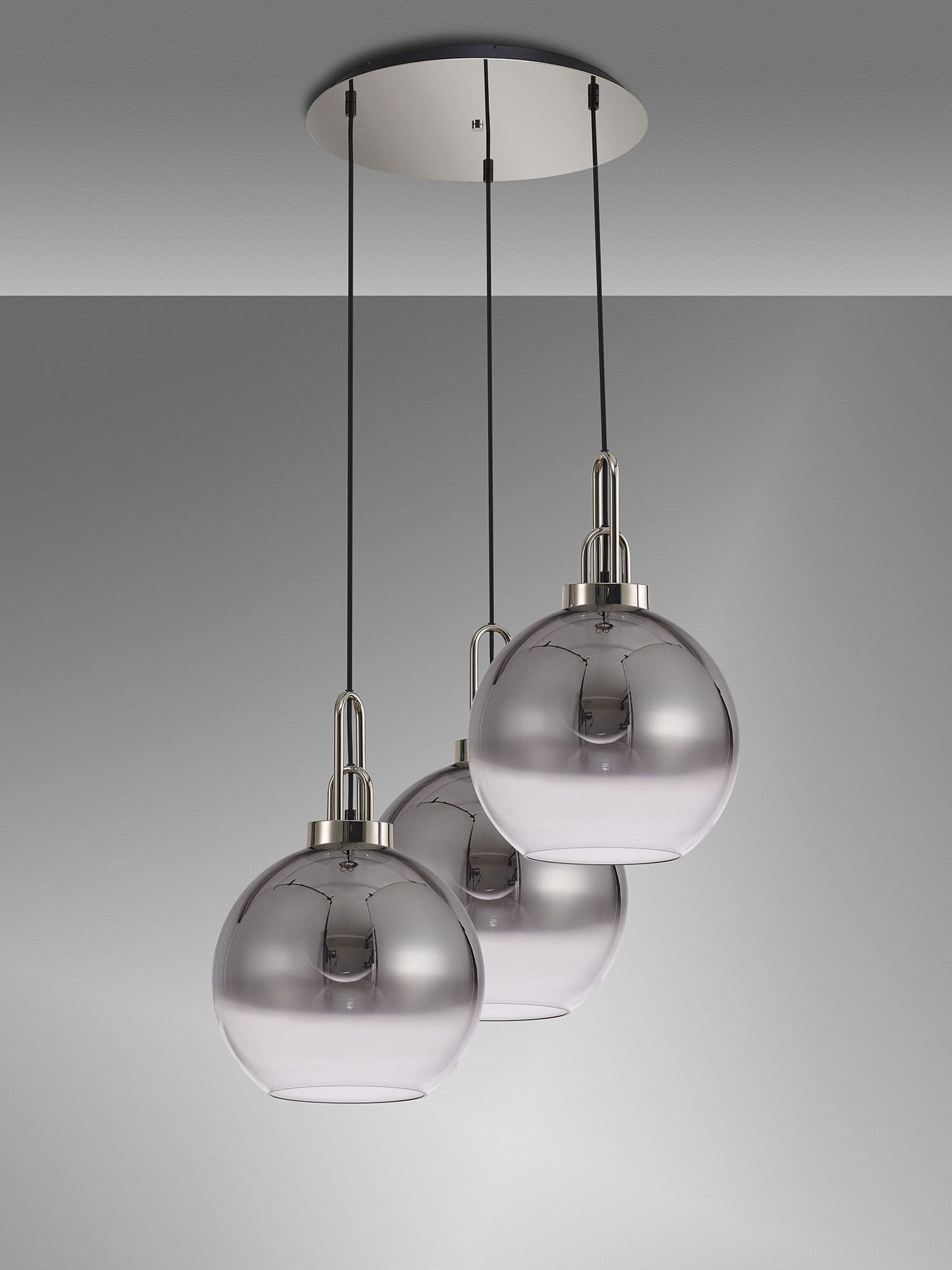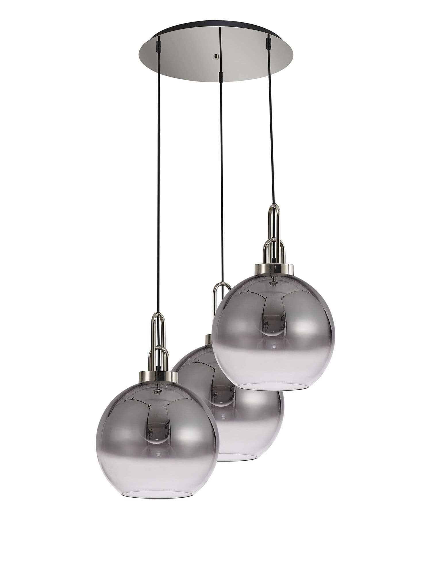 Brief Description:Barcelona Round 3 Light Pendant With 30cm Globe Glass, Black Chrome/Matt Black Smoked/Clear