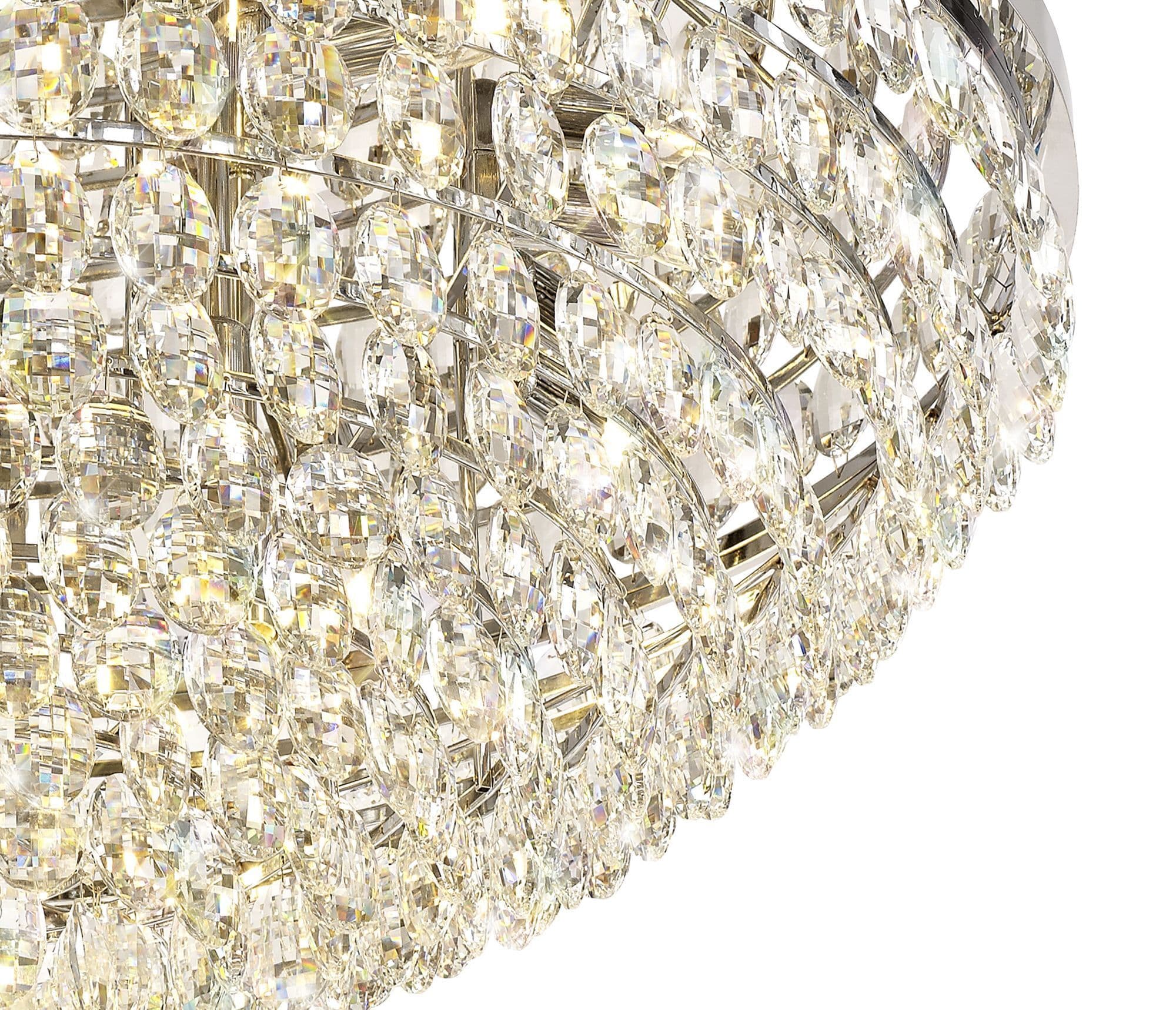 Coniston is the epitome of a stunning crystal collection. Staying true to the high quality and distinctive designs, this range hosts an abundance of clear crystal pieces. Delicately displayed in a tiered cascading form to outline a striking feature. Available in two colour finishes with flush and pendant sizes including a complementing wall lamp, Coniston engaging sophistication can be displayed within a wide range of settings.