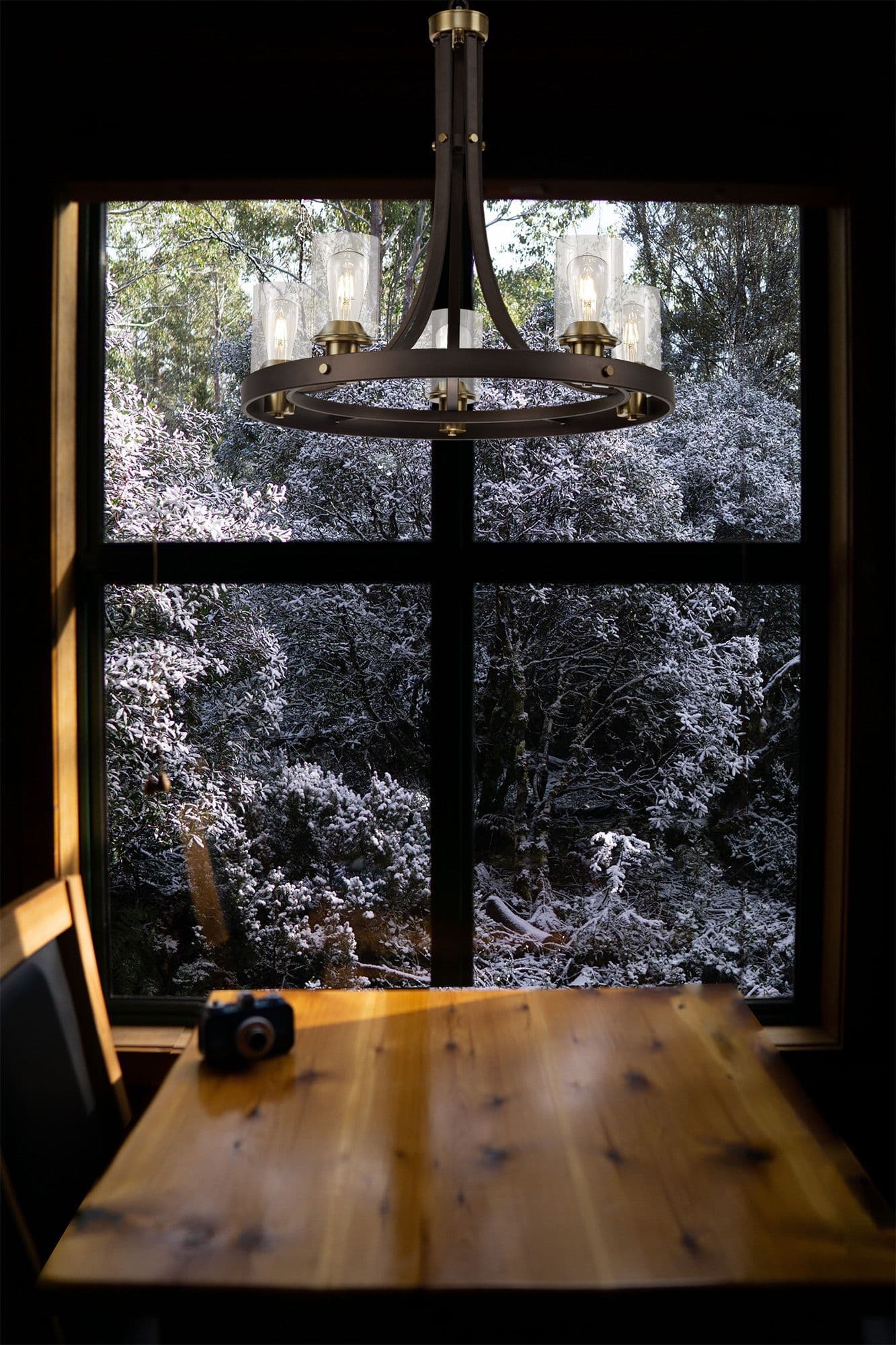 The Medieval notion of illuminating a room by sitting candles along a hanging frame has been re-imagined with modern day materials and lighting to design the Grenada collection which will enhance a traditionally styled setting. The dark Brown Oxide and Gold Bronze finish gives the fixtures an antique feel whilst the glass cylinders surrounding the E27 lampholders furthers the historic ambience, particularly when used in conjunction with(LED or CFL candle lamps.